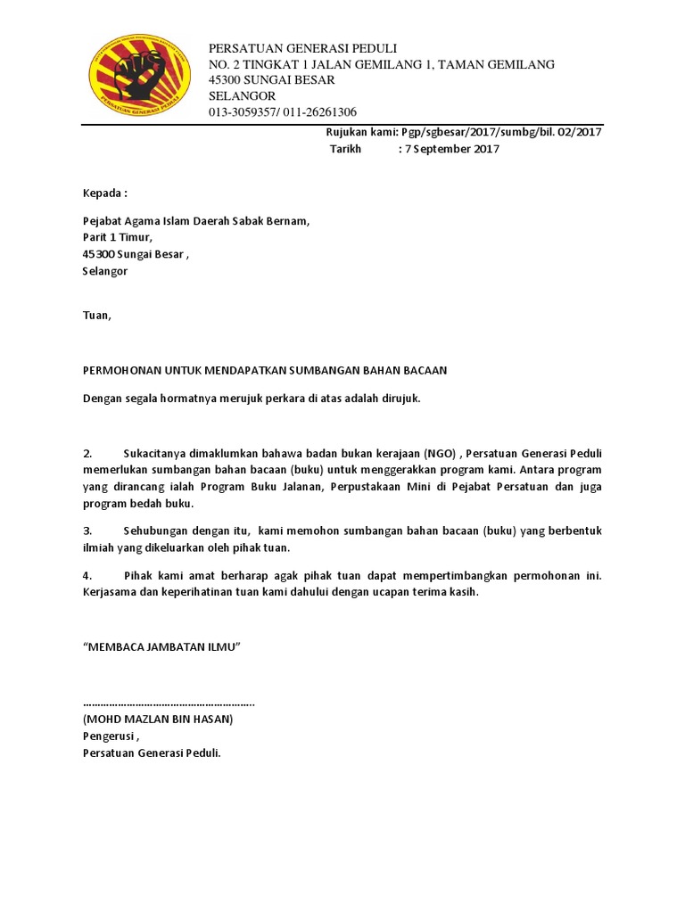 Surat permohonan biasanya dipakai oleh seseorang, organisasi, instansi, atau badan usaha untuk mengajukan suatu permohonan secara formal kepada pihak lain. Demikian surat pengunduran diri kerja ini saya buat dengan penuh kesadaran serta atas keinginan sendiri dan tanpa ada paksaan dari siapa pun. Kegiatan tersebut bisa berupa acara maupun rapat yang akan dilangsungkan dalam waktu dekat. Anda mungkin antara meraka tidak berpuas hati tentang kenaikan harga ,cukai atau sebagainya. Contoh surat penagihan akan kamu temukan di sini.
