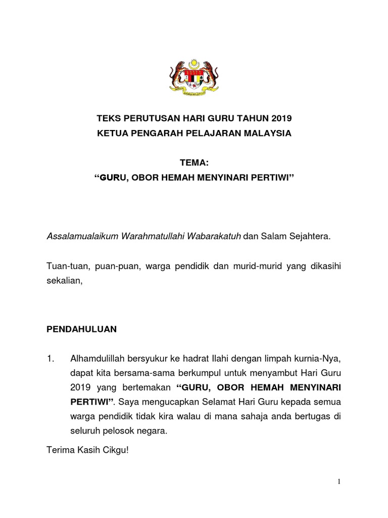 Perutusan hari guru 2018 merupakan perkara penting setiap kali sambutan hari guru. Pidato itu akan dibacakan pada upacara bendera peringatan hari guru nasional tahun 2019. Teks ucapan yb menteri pendidikan sempena majlis perutusan tahun baha. Hari guru nasional 2019 bertema guru penggerak indonesia maju simak ragam kegiatan dan sejarahnya tribunnews com. Menjelang hari guru nasional, beredar naskah pidato menteri pendidikan dan kebudayaan (kemendikbud) nadiem makarim untuk memperingati hari guru nasional yang diperingati setiap 25 november.